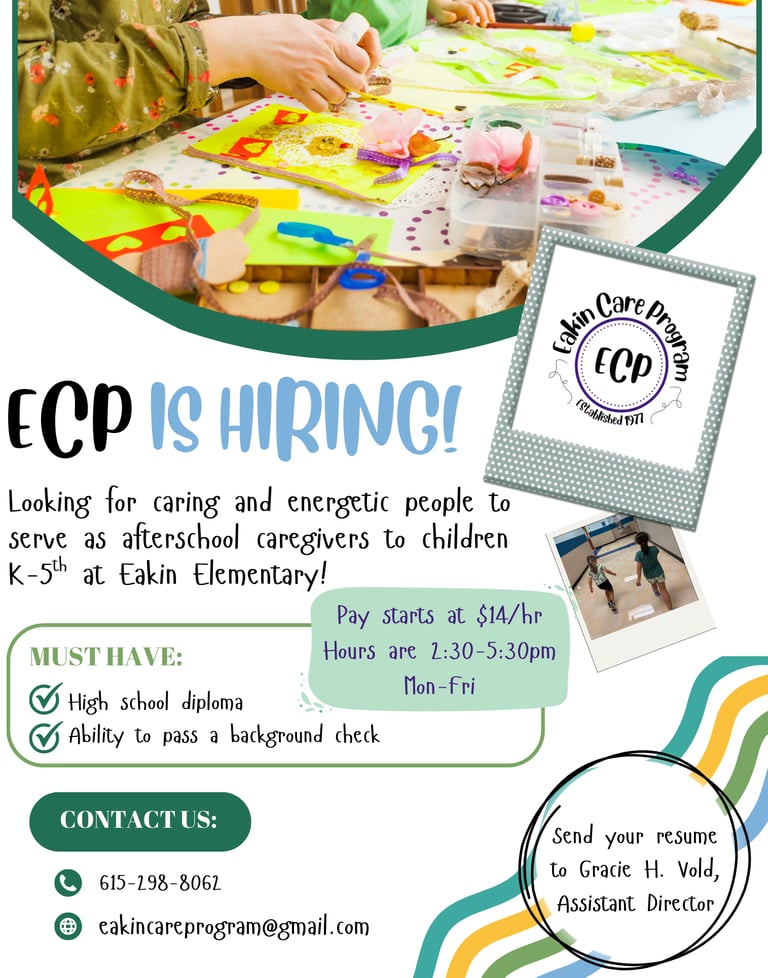 Email your resume to Assistant Director, Gracie H. Vold, at eakincareprogram@gmail.com.